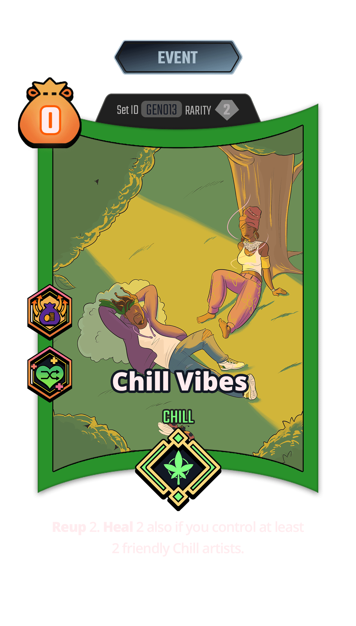 Reup 2. Heal 2 also if you control at least 2 friendly Chill artists.