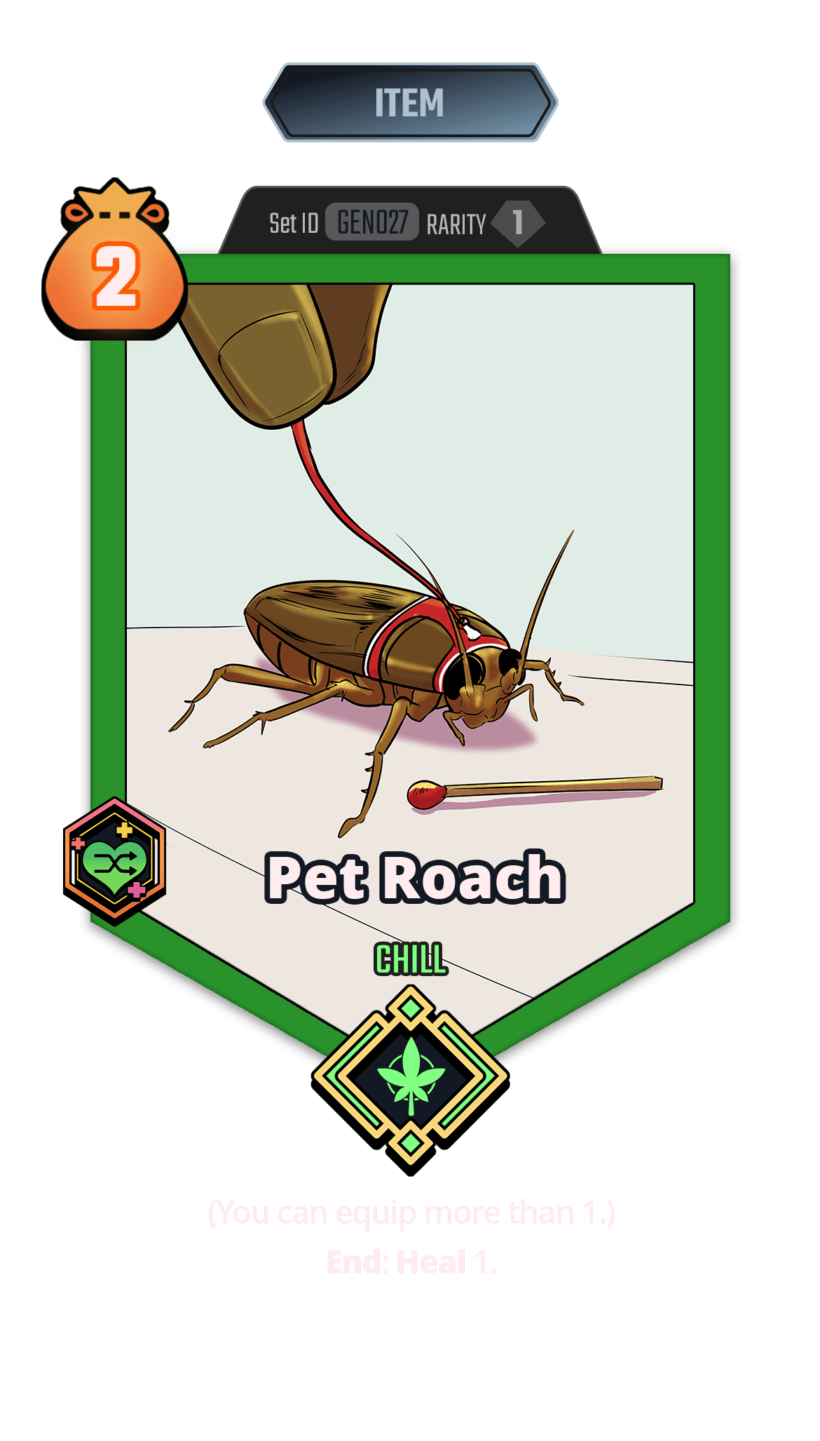 (You can equip more than 1.) End: Heal 1.