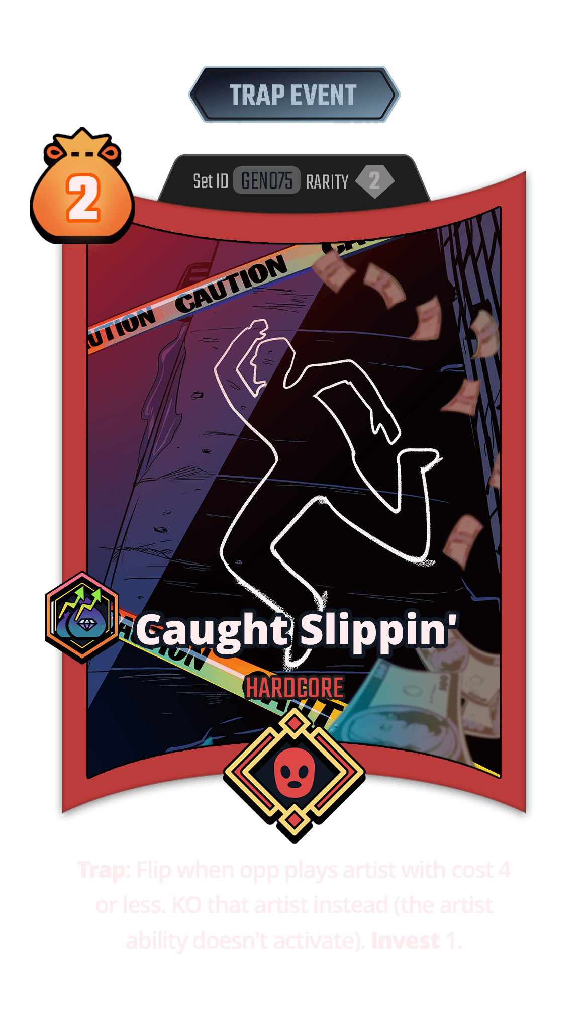 Trap: Flip when opp plays artist with cost 4 or less. KO that artist instead (the artist ability doesn't activate). Invest 1.